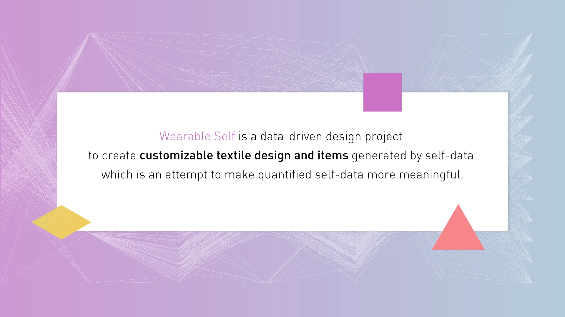 Wearable Self, Wearable Data is my upcoming thesis project for MFA Design and Technology program in Parsons School of Design.